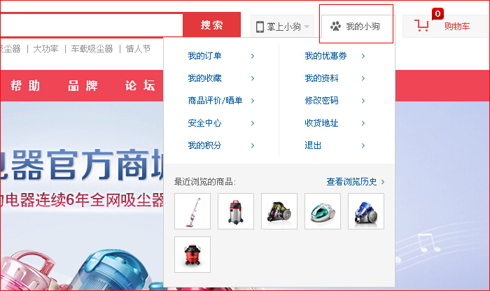 第一步:登录,登录后点击“我的小狗”进入个人中心页面。